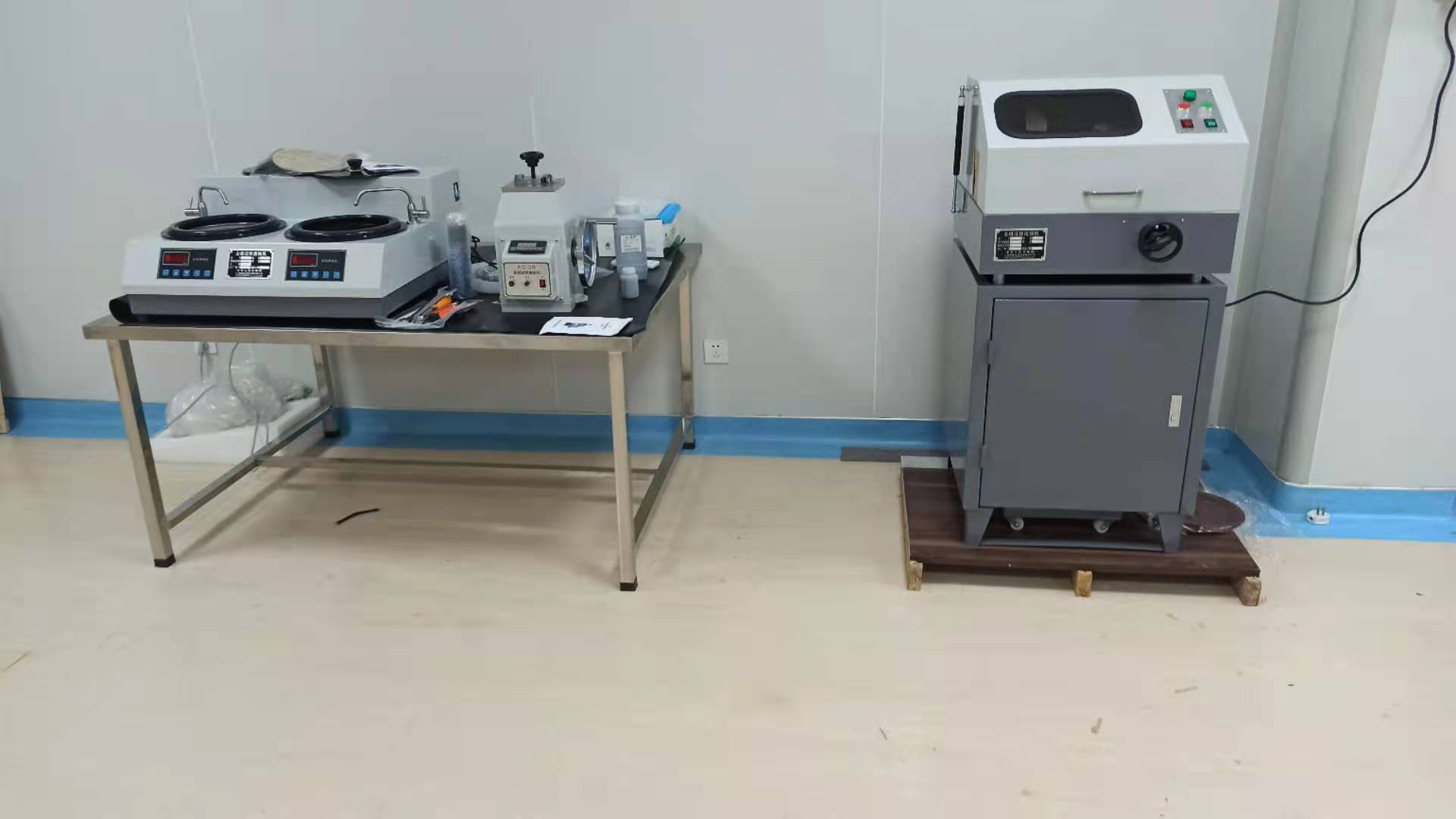 駝人集團現(xiàn)場調(diào)試金相顯微鏡DMM-200C,金相試樣切割機QG-3A,金相試樣磨拋機YMP-2,金相試樣鑲嵌機XQ-1。